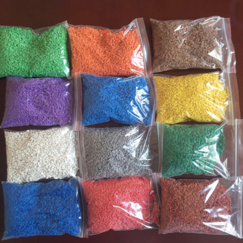 彩色顆粒大小徑約2-4mm,使用運動場專用PU鋪設(shè),并在其表面鋪撒膠粒而成。合成面層具有高能量的物理彈性及高度的抗耐磨性,并且能抵御各類極端氣候狀況:長時間的日照、雨季及冰凍氣候。適用于比賽型專業(yè)場館,體育場或體育中心等場地。